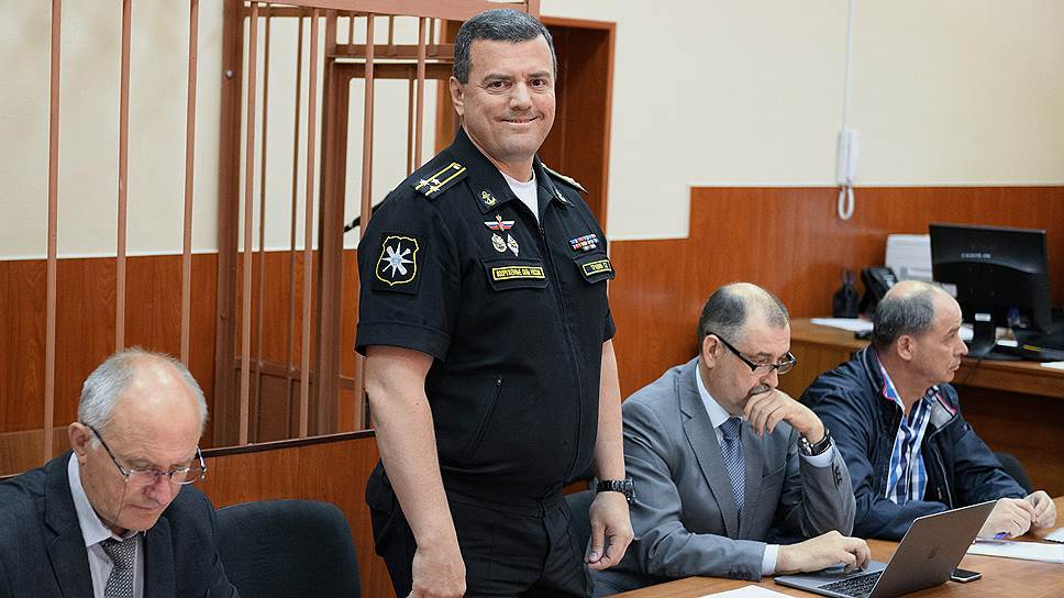Июль 2018 г. Обвиняемый, начальник управления навигации и океанографии Минобороны капитан I ранга Сергей Травин во время заседания 224 Гарнизонного военного суда