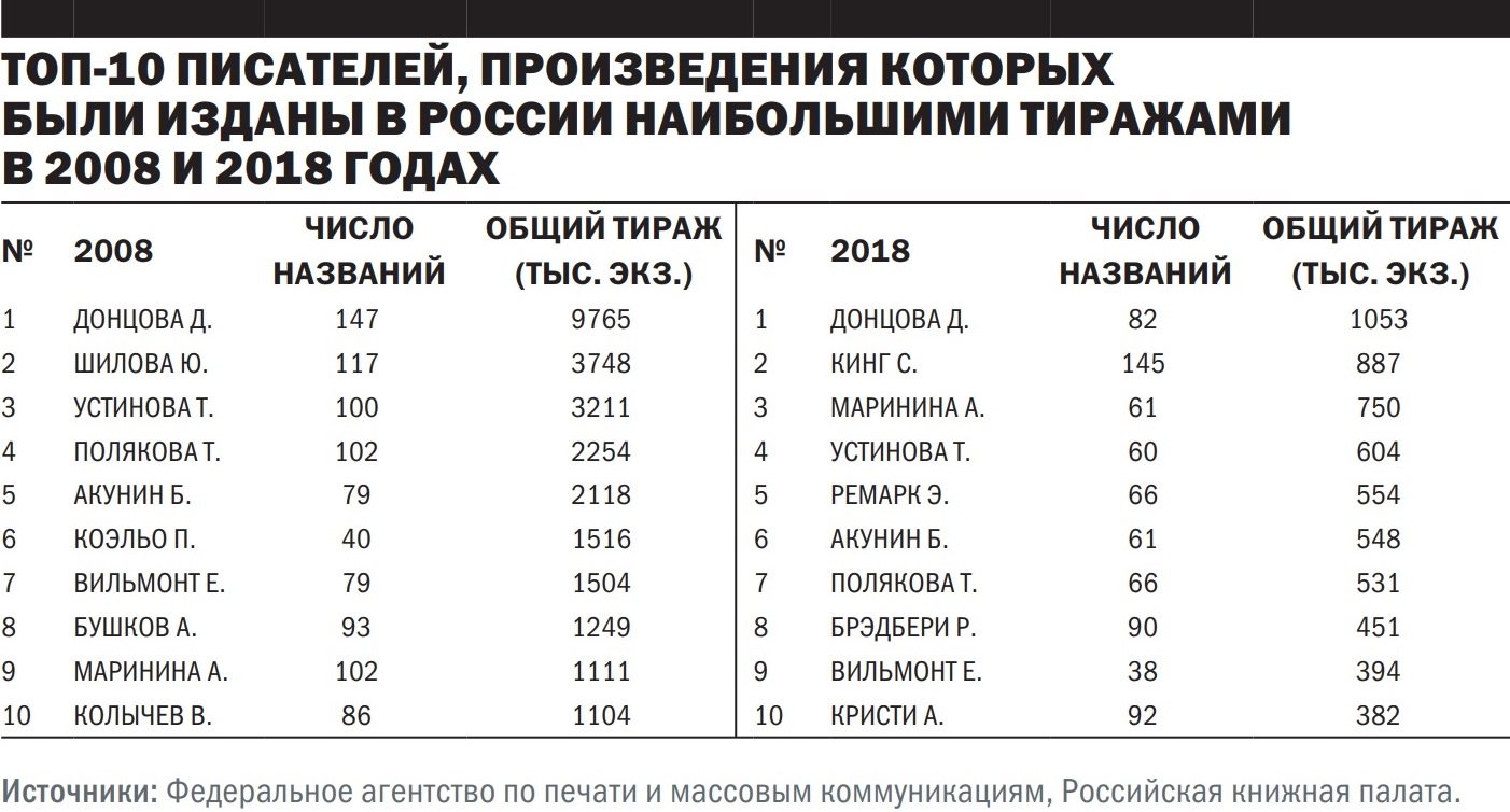«Глобально на издательствах это не отразится, только 1% выручки у нас приходится на украинский рынок,— заверил президент "Эксмо-АСТ" Олег Новиков.— С 2017 года мы и так согласовывали с Госкомтелерадио каждое наименование книги, которая ввозится в страну. Это вопрос скорее потери читателя. По нашим оценкам, 60% украинцев предпочитают книги именно на русском языке, топ популярных авторов такой же, как и в России: Дарья Донцова, Татьяна Устинова, Александра Маринина, в их книгах нет никакой антиукраинской направленности».