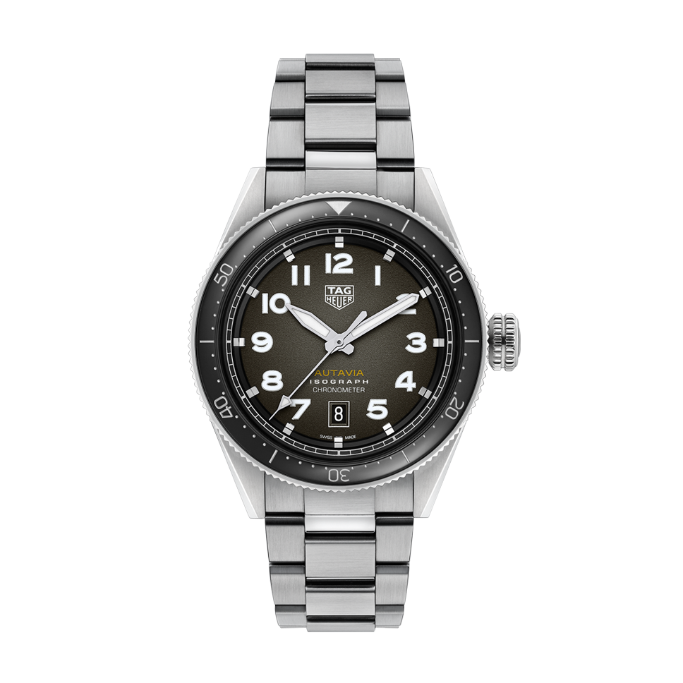 Название модели Autavia происходит от совмещения двух слов — «auto» и «aviation», что отсылает сразу и к пилотским часам: крупные часовые индексы и заводная головка, чтобы можно было поправить время даже в перчатках из грубой кожи, и историческому сотрудничеству марки с «Формулой-1» — хронограф с двунаправленным 60-минутным безелем. Этот трехстрелочник с индикатором даты только кажется простым. Внутри часов работает мануфактурный механизм Tag Heuer на базе спирали из инновационного материала, композитного карбона, о чем свидетельствует надпись Isograph на циферблате. Среди семи моделей есть варианты с корпусом из стали и бронзы, с циферблатом и ремешком цвета хаки, керамическим безелем.