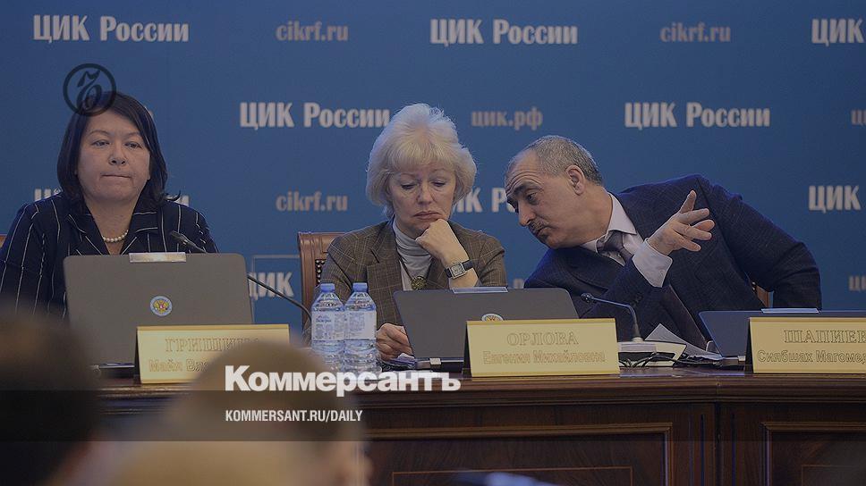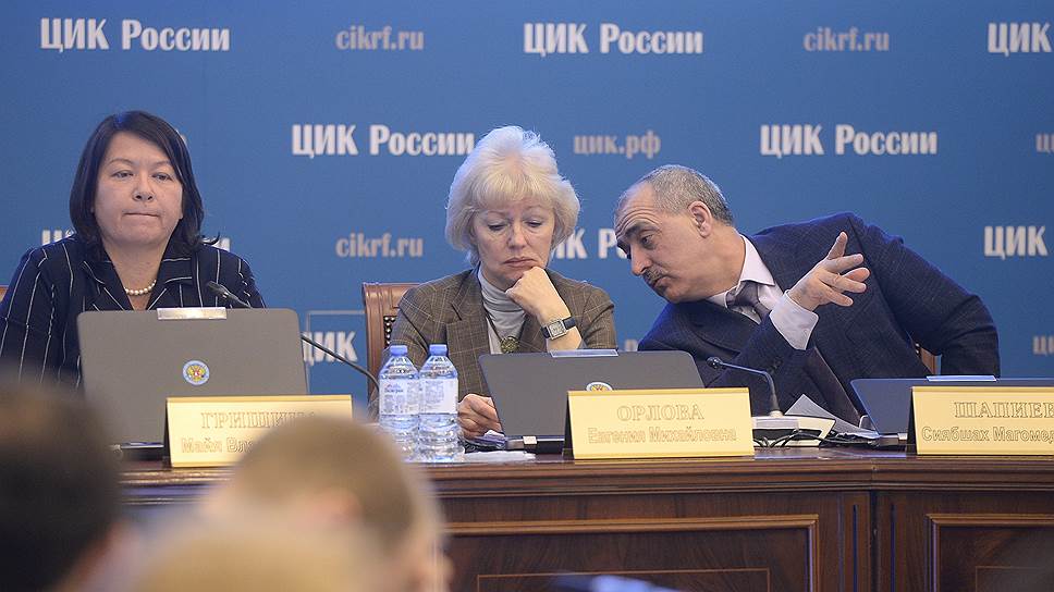 Члены Центральной избирательной комиссии России Майя Гришина, Евгения Орлова и Сиябшах Шапиев во время заседания
