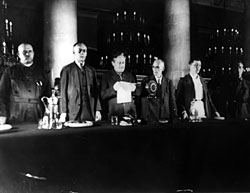 Однако суд должен был произвести респектабельное впечатление. В качестве сценической площадки был избран Колонный зал Дворянского собрания — здания, уже ставшего тогда Домом союзов. Да и сам судебный орган был заимствован из дореволюционной жизни. Шахтинское дело разбирало Специальное судебное присутствие, процессуальные функции которого в советском законодательстве не были прописаны. Возглавил присутствие ректор МГУ профессор А. Я. Вышинский.