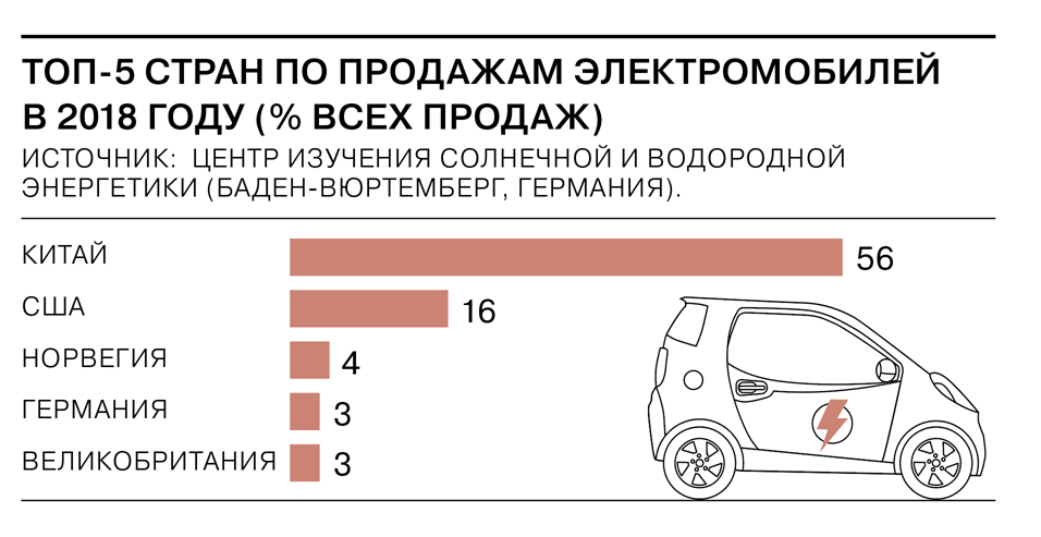 Бум электрического транспорта в Китае — во многом заслуга властей, которые вкладывают огромные средства в развитие зарядных станций, новые технологии, инвестиции автопроизводителям, а также в налоговые льготы как для производителей, так и для покупателей электромобилей (отсутствие регистрационного налога). В прошлом году в Китае было продано электромобилей больше, чем во всем остальном мире (см. диаграмму). Еще десять лет назад, в 2009 году, правительство КНР приняло план, по которому страна к 2020 году должна стать лидером в производстве электромобилей. Власти решили стимулировать производителей, выплачивая им $9,3 тыс. за каждый проданный электромобиль и $7,6 тыс. за гибрид. Были приняты и соответствующие административные меры, поскольку многие ведущие автоконцерны принадлежат полностью или в той или иной мере контролируются государством.