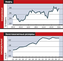 Поменялись настроения и на фондовом рынке. Трейдеры давно ожидали коррекции и, похоже, дождались. В минувшую среду индекс РТС упал почти на 4% — максимальное падение в этом году. На следующий день падение продолжалось. Всего за два дня рынок нивелировал месячный подъем. Повод для коррекции был весомым — начало расследования прокуратурой налоговой деятельности ряда нефтяных компаний, российских "голубых фишек". Участники рынка полагают, что вместе с наездом властей на собственников ЮКОСа это четкий сигнал властей крупному бизнесу. К смене правил во время игры российским трейдерам не привыкать. Проблемой это может быть для консервативных иностранных инвесторов, которые постепенно возвращаются в Россию. Так что традиционная летняя коррекция, к которой многие инвесторы относятся с пониманием, при неуклюжих действиях властей может привести к неуправляемому падению фондового рынка.