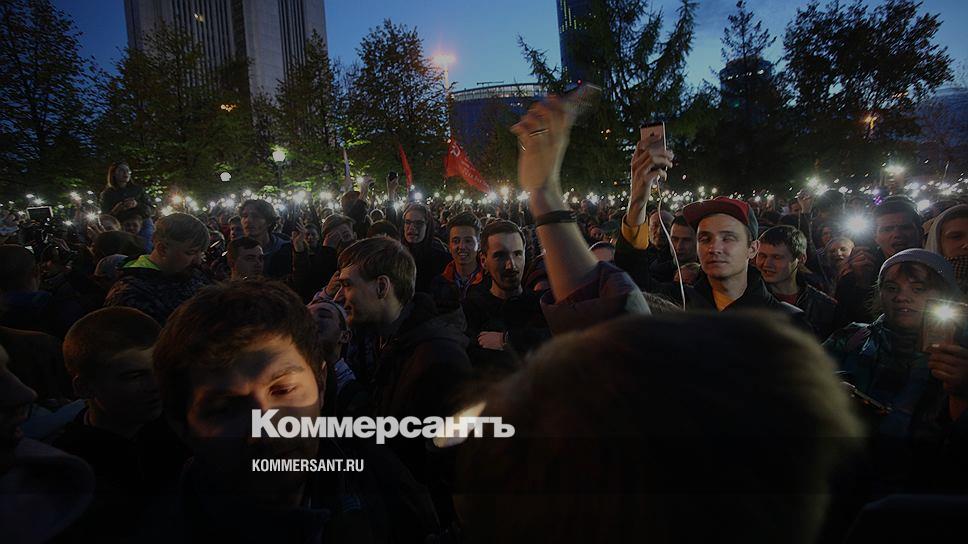 В ходе несогласованной акции протеста противники строительства повалили часть ограждения и затем стали гулять по скверу