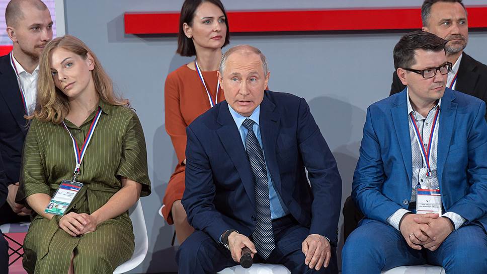 Владимира Путина в заполненном зале ждали минут сорок. Участникам будущей встречи пришлось стать свидетелями некоторых активностей. Так, телеведущая Елена Малышева ходила с телефоном в руках между рядов и честно предупреждала: