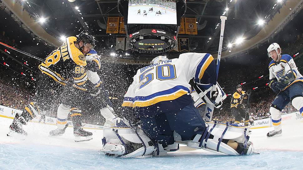 Финал Кубка Стэнли открылся матчем, в котором долго отдыхавший после предыдущей серии «Бостон Брюинс» сложно входил в домашнюю игру, уступал 0:2, но в итоге, перезагрузившись, задавил «Сент-Луис Блюз» и добился победы со счетом 4:2.