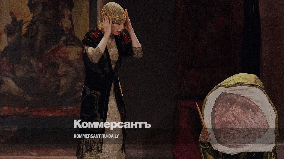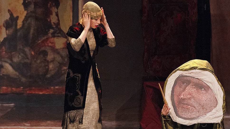 Спектакль начинается в коридоре некоего обшарпанного, годов этак 1950-х, присутственного места (возможно, что и полицейского участка, судя по портрету некоего генерала в кепи и орденах), где ждет приема очередь (единственная возможность для ассистентов главных героев показаться зрителям во плоти). Люди бестрепетно входят в дверь кабинета, из другой двери прибывают новые, и только старая бродяжка, укутанная в кокон неказистого тряпья, не спешит предстать перед начальством. Оставшись последней и единственной, она скидывает свой кокон и оказывается женщиной — нарядной, как бабочка, высокой, длинноногой, невесомой, в легчайшем затканном золотом вечернем платье.