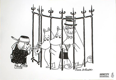 50 Муми-тролли работали на Amnesty International. В начале 1980-х годов Туве Янссон сделала муми-троллей лицом финской кампании по освобождению из тюрем призывников, отказавшихся проходить военную службу по убеждениям. Кампания с участием муми-троллей получилась такая громкая, что в 1987 году призывникам разрешили не доказывать свои убеждения, несовместимые со службой в армии, а просто обозначать в анкете их наличие.