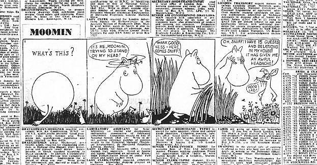 31 За пять лет Туве Янссон создала для The Evening News более 10 300 рисунков для 21 комикса. При таких темпах она почти не могла заниматься живописью и в 1959 году поняла, что больше не может видеть муми-троллей. Она разорвала контракт с газетой, предложив на замену своего брата, Ларса Янссона, который часто помогал ей с рисунками и переводами комиксов на английский язык. Ларс создавал муми-комиксы следующие 15 лет, пока тоже не отказался от этой работы — муми-тролли стали по ночам являться ему во сне.