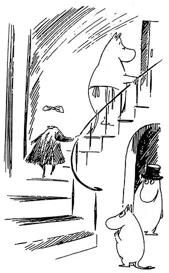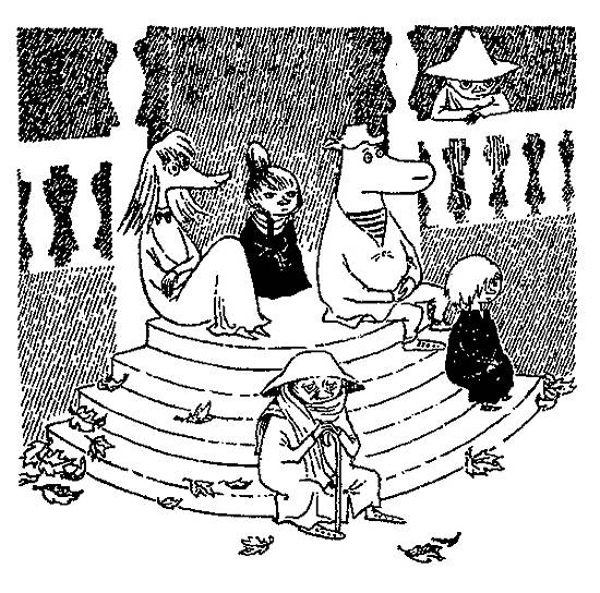 33 В последней повести муми-тролли вообще не появляются. Действие книги «В конце ноября» (1970) происходит в Муми-доле, но самих муми-троллей там нет — они переехали на остров с маяком. Остальные персонажи пытаются сохранить привычный порядок в опустевшем доме, но все идет наперекосяк. В финале Янссон оставляла надежду на возвращение семьи в Муми-дол, но новой повести так и не написала.
