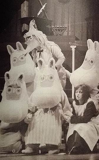 40 Еще популярнее оказался балет про муми-троллей. Финская национальная опера поставила два балета про приключения муми-троллей — в 2015-м по повести «Комета прилетает» и в 2017-м по «Шляпе волшебника». Из-за объемных костюмов актеры, исполнявшие партии муми-троллей, танцевали практически вслепую, ориентируясь в парных танцах на ощупь. Оба спектакля пользовались невероятной популярностью — билеты раскупались в первые сутки, а 2015 году в День матери балет «Комета прилетает» пришлось исполнять три раза, чтобы его смогли посмотреть все желающие.
