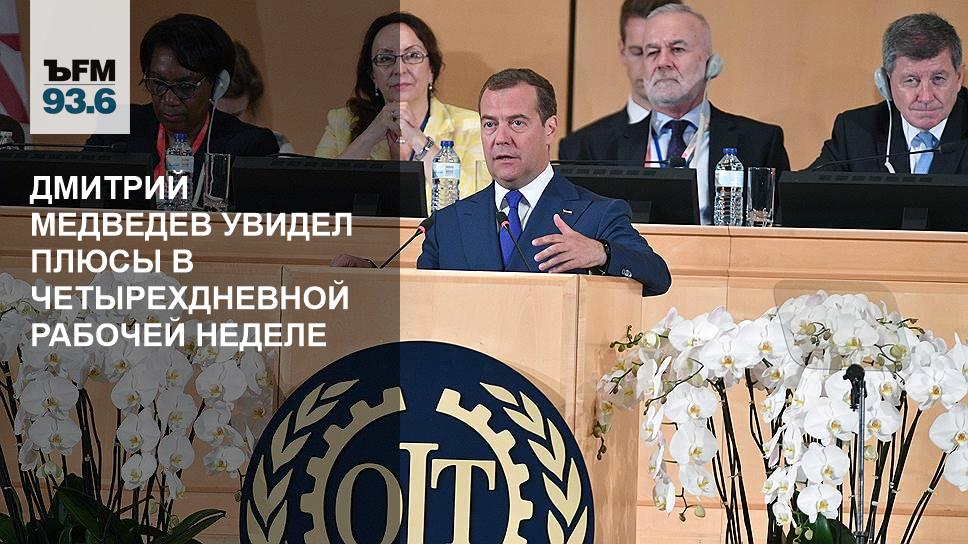 Премьер-министр Дмитрий Медведев не исключил переход на четырехдневную рабочую неделю. Об этом он заявил на Международной конференции труда в Женеве. Председатель правительства подчеркнул, что условия труда в последнее время сильно изменились, а значит, рабочее время тоже нуждается в корректировке. Медведев привел в пример опыт Генри Форда, который 100 лет назад сократил трудовую неделю с 48 до 40 часов и получил впечатляющий рост производительности.