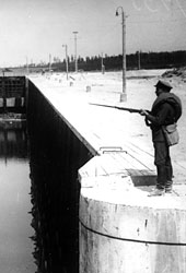 Между тем модернизация канала была действительно сложной и не имеющей однозначного решения задачей. Углубить ББК до 6,5 м было еще возможно, но река Свирь, в которую суда в какой-то момент выходили, была значительно мельче. Расчищать вручную каменистую и порожистую Свирь было делом долгим и хлопотным. Поэтому приняли другой вариант, предусматривавший строительство плотин, подъем уровня Свири и, соответственно, Онежского озера. При этом под водой оказались бы десятки деревень, часть Мурманской (тогда Кировской) железной дороги, значительная часть Петрозаводска и несколько крупных промышленных предприятий. Проект был заморожен, поскольку и такой ценой углубить ББК до уровня Панамского канала не получалось. И все же один город затопили. Во время Отечественной войны отступающие советские войска взорвали все семь шлюзов так называемой Повенчанской лестницы. Вода хлынула в озеро и смыла Повенец вместе с теми, кто не успел эвакуироваться. После войны на канал снова пригнали зэков, на этот раз из проверочно-фильтрационных лагерей, и летом 1946 года он вновь стал действующим.