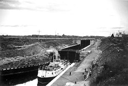 | Для океанского флота Беломорканал был слишком мелок, поэтому пользовались им лишь небольшие суда. А поднятию уровня воды в нем мешал Петрозаводск, значительная часть которого в этом случае оказывалась под водой |