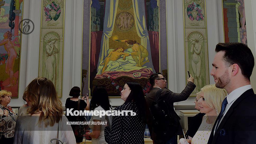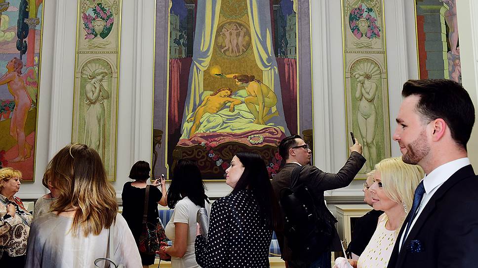 Самая наглядная часть выставки — воссозданный интерьер музыкального салона морозовского особняка с панно кисти Мориса Дени