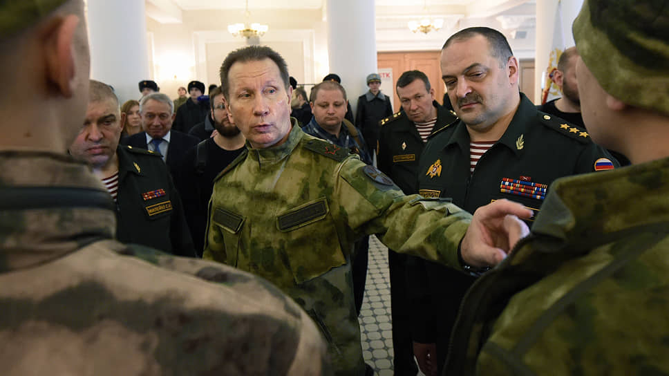 Генералы Сергей Меликов (второй справа) и Сергей Милейко (слева) написали рапорты об увольнении из Росгвардии, после того как директор службы Виктор Золотов (в центре) перераспределил полномочиям между своими заместителями