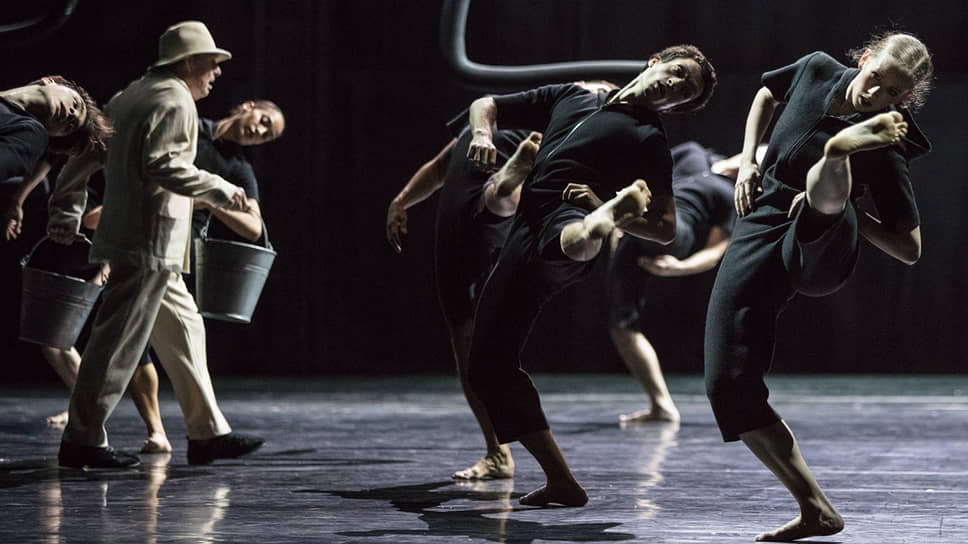 Черной активной толпе противопоставлен старец в старинном белом полотняном костюме: 78-летний Никлас Эк весь спектакль наполняет водой ванну, с алюминиевым ведром в руке пересекая сцену по диагонали из нижней левой к правой верхней кулисе. Делает он это сосредоточенно и мерно, лишь изредка оценивая взглядом бурное мельтешение молодняка. К финалу его диагональный путь пересекается с горизонталями толпы. Старикана пытаются устранить: нахлобучивают на голову ведро, утаскивают за кулисы, воздев в высокой поддержке. Но упрямый стоик-сизиф вновь является, уже с двумя ведрами, выливает их в ванну и бросается туда сам, вздымая тучу брызг. И пока агонизирующая на полу молодежь описывает своими телами круги, на глазах испуская дух и замирая в неподвижности, фонтан творчества, искусства, жизни продолжает бить из полной ванны до самых последних аккордов «Болеро». Яснее высказаться было невозможно. Похоже, это действительно последний балет Эка. Хореограф поставил точку, точнее — восклицательный знак.