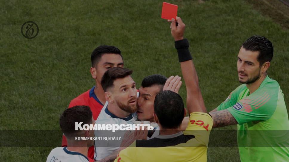 Красная карточка, показанная Лионелю Месси (в центре) в матче за третье место на Кубке Америки против сборной Чили, стала всего лишь второй в карьере знаменитого аргентинца