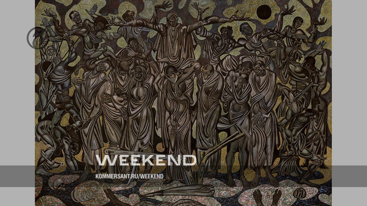 Семьдесят листов пастозной акварели с белилами и тушью, техники авторской и как бы унаследованной от миниатюристов прошлого, являются полем битвы философского факультета Тбилисского университета и графического отделения Тбилисской академии художеств, которые с успехом окончил Самсонадзе. Лейтмотивом служит тема единства и борьбы противоположностей (добра и зла, света и тьмы, инь и ян, словом, всего универсального и бинарно-оппозиционного), которая раскрывается на эпическом, в годы застоя — национально-мифологическом, а в годы перестройки — библейском материале. Целью этих сражений, кажется, было очередное переизобретение национального стиля, синтезированного из подручных материалов — от средневековой книжной миниатюры, каменных рельефов и фресок Мцхеты до манерного ар-деко Ладо Гудиашвили — с привлечением по мере надобности сасанидского серебра и каджарской или раджпутской живописи. Видимо, таким намеренно усложненным аллегорическим языком можно было изъясняться на окраинах империи, где было сложнее провести границу между формализмом и советским ориентализмом,— Михаил Шемякин за сходные прегрешения отправился в психушку, а на Малой Грузинской это считалось бы верхом сюрреалистического вольнодумства. У Самсонадзе была репутация выдающегося шрифтовика, но на выставке лучшими работами выглядят не композиции с текстами, а бессловесные «Иллюстрации Средних веков» конца 1970-х — самые лаконичные по манере говорения. И хотя их намеренная, стилизаторская безыскусность далека от простоты его кумира, здесь Иосиф Самсонадзе ближе всего подходит к Нико Пиросмани, которого боготворил и о котором написал повесть для детей. Это, пожалуй, единственное, что как-то связывает его с героем другой выставки, первооткрывателем и пропагандистом Пиросманиева искусства.