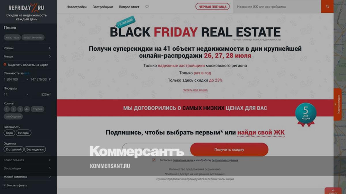Пять лет назад Ассоциация REPA вышла на рынок с беспрецедентным продуктом, запустив первый в мире масштабный онлайн-сервис по продаже первичной недвижимости. Ассоциации удалось не просто собрать скидочные предложения по новостройкам в рамках единой масштабной распродажи, а добиться уникальных скидок от застройщиков московского региона. В прошлом году максимальная скидка достигла 42%, в этом году организаторы готовятся к показателям в 20-40%. «Чёрная пятница рынка недвижимости» проходит ежегодно и длится всего 3 дня, в этот раз она стартует 26-го июля в 00 часов 01 минуту, а завершится 28-го июля в 23:59. Каждый раз за три дня акции продается недвижимости на 3 млрд. рублей.