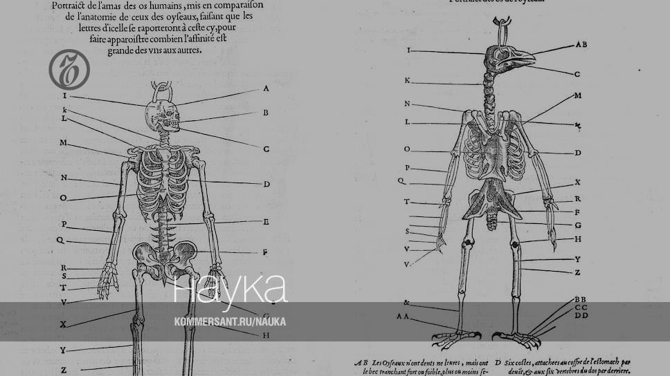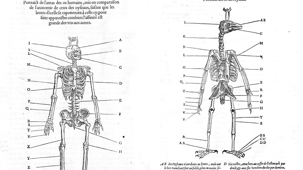 Человек Нового времени с большим интересом и без намека на внутренний протест рассматривал популярные в те времена рисунки, иллюстрирующие его близкое родство с разными животными. Например, рисунок, где сравнивались скелеты человека и птицы, из книги Пьера Белона 1555 года. Удивительное их сходство тогда было наглядным свидетельством, разумеется, не родства человека с курицей, а единства и мудрости Божьего замысла.