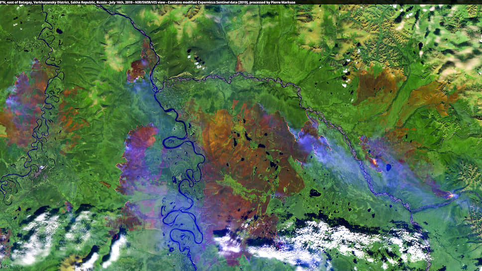 Оценить масштабы огненной беды, захватившей в плен больше 3 млн гектаров иркутских, красноярских и якутских лесов, по сухим цифрам и высказываниям чиновников невозможно. Реальную картину дают лишь космические технологии. На снимке из космоса видно, как сибирские изумрудные долины превращаются в ржавые пятна, слегка прикрытые голубыми облаками дыма. Зрелище — впечатляюще-ужасающее и вызывает единственный вопрос: что делать и делать ли? Ведь основные очаги возгорания находятся в сотнях и даже тысячах километров от людей, подобраться к ним непросто, а потушить — нереально. Дело в том, что ликвидировать природные пожары (да еще и на такой площади) привычными способами нельзя. Техника и специалисты, отправленные на места, активно поливают языки пламени. Вот только их вклад — буквально капля в море. Территория, на которой они работают,— меньше 5% от пожаров в целом.