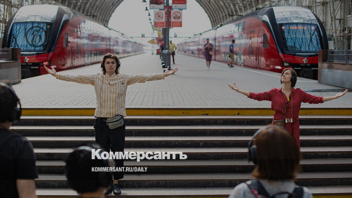 Точные и аскетичные движения двух гидов-перформеров сопровождают спектакль-путешествие по Киевскому вокзалу