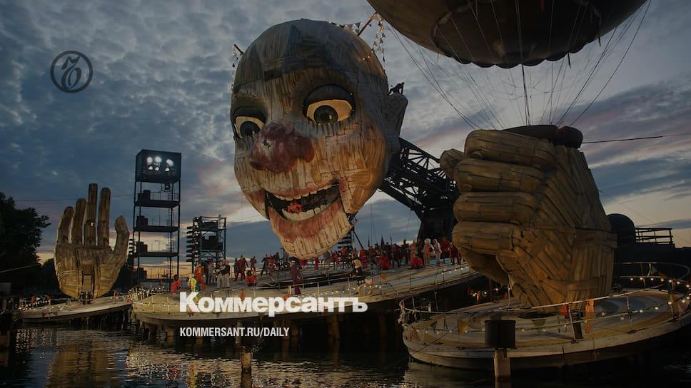 Три состава постоянно перетасовываются, взаимозаменяемы и дирижеры — наверное, впервые в истории фестиваля в очередь играют Энрике Маццола и Даниэле Скуэо (его и слышал корреспондент “Ъ”), которым приходится руководить оперой на расстоянии: оркестр находится на сцене Фестивального дворца, звук передается через сложно организованную систему стоимостью в миллионы долларов на озеро. Динамики спрятаны в декорации: например, когда поют внутри огромной головы, а та вертится, звук движется вместе с ней.
