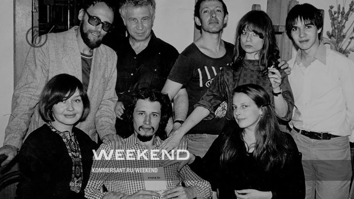 Дмитрий Пригов, Илья Кабаков, Иосиф Бакштейн, Сабина Хэнсген, Антон Носик (cтоят); Виктория Мочалова, Владимир Сорокин, Ирина Нахова (сидят). 1985
