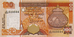 Справа на лицевой стороне банкнота номиналом 100 рупий (серия 2001 года, модификация) размером 144х72 мм помещено изображение декоративной вазы. На оборотной стороне банкнота вертикально ориентированно изображены чайная плантация, попугаи и тропические цветы. Банкнот защищен водяным знаком в виде геральдического льва. Защитная нить с микротекстом "Central Bank of Sri Lanka Rupees One Hundred" по всей длине проходит справа от центра. Основные цвета, использовавшиеся при оформлении банкнота,— красно-коричневый, оранжевый и желтый.