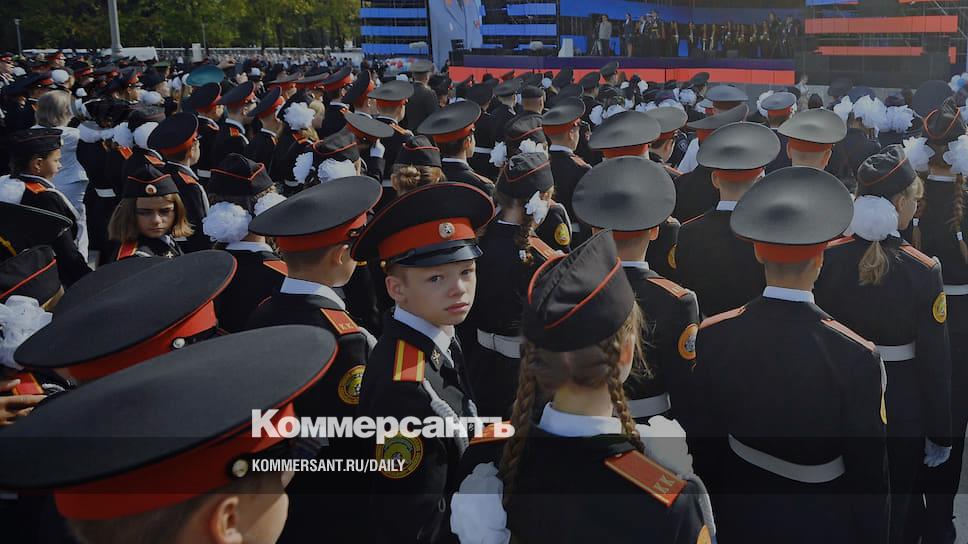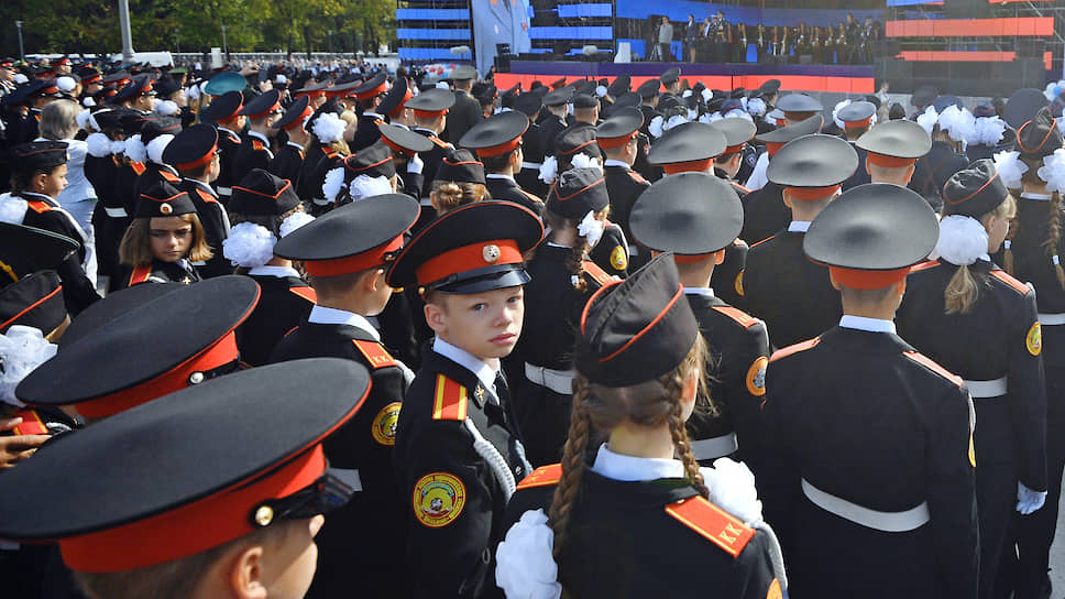 На общегородской линейке 1 сентября выстроились школьники в кадетской форме