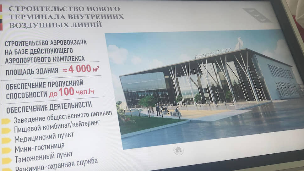 По словам Романа Старовойта, концессионер планирует построить двухэтажное здание аэровокзала площадью 3,7 тыс. кв. м к первому кварталу 2021 года «без привлечения бюджетных средств». «С нашей стороны необходимо обеспечить подводку коммуникаций, предоставление без торгов участка, что совершенно недавно было», — сообщил врио губернатора. Он также рассказал, что старое здание аэровокзала, построенное около 50 лет назад, «на первом этапе реализации проекта развития авиационного узла» будет использоваться для обслуживания международных авиарейсов. На данный момент таких рейсов в аэропорту нет.