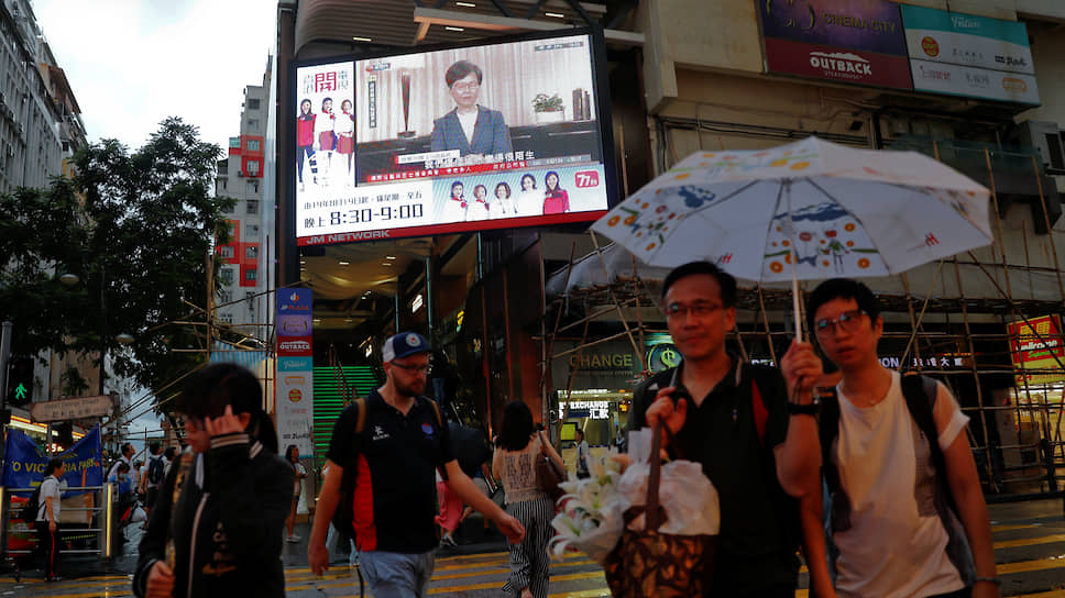 В телевизионном обращении глава специального административного района (САР) Китая объявила о выполнении главного пункта требований протестующих — отзыва злополучного закона об экстрадиции из парламента. Напомним, еще в июне она сообщила, что «закон мертв». Но протестующие этим не удовлетворились, посчитав, что «он мертв» — не юридический термин, и указав на то, что закон формально остается на рассмотрении парламента. Напомним, что закон предполагал возможность выдачи в Китай подозреваемых в совершении преступлений, и местная общественность опасалась, что он будет использован для террора в отношении диссидентов, критикующих власти КНР.