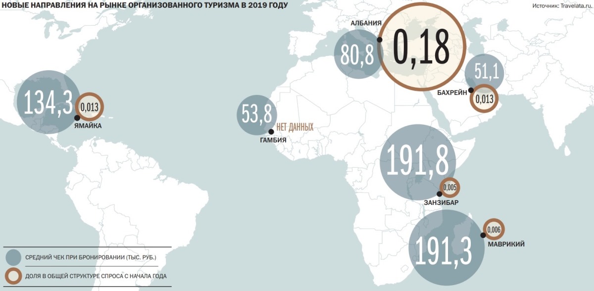 В Level.Travel добавляют, что, стремясь привлечь дополнительное внимание к новым направлениям, многие туроператоры демпингуют. Например, найти онлайн пакетный тур на Ямайку в конце марта, по данным сервиса, можно за 44 тыс. руб. с человека, включая прямой перелет, трансфер и 11 дней в отеле. А провести неделю на Занзибаре возможно по цене Турции — недавно стартовали продажи доступных отелей на курорте.