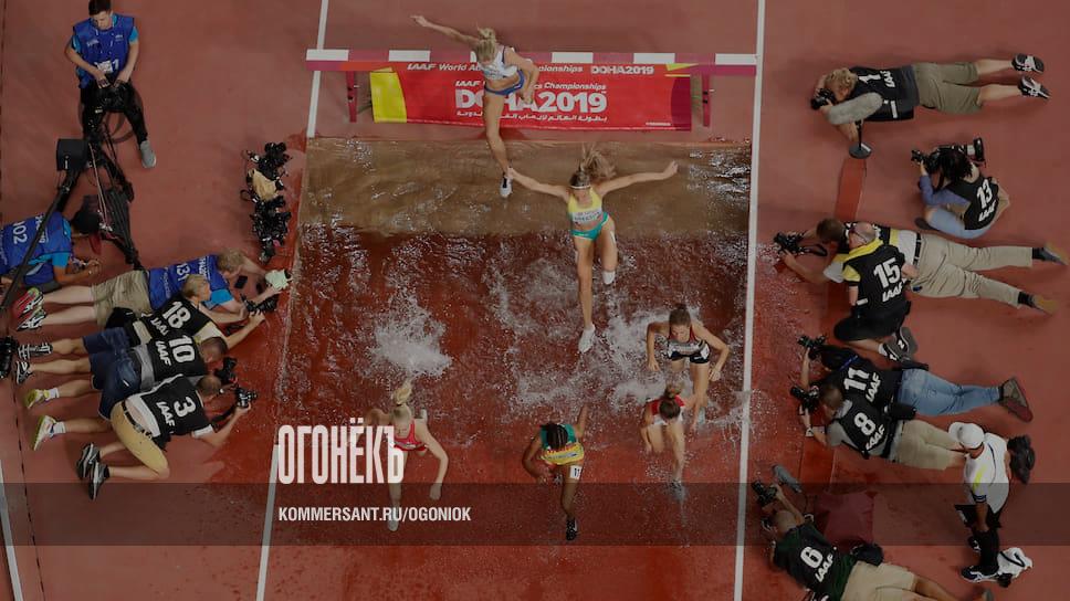 Стартовавший в Дохе чемпионат мира по легкой атлетике уже порадовал отечественных болельщиков: Анжелика Сидорова победила в прыжках с шестом, Мария Ласицкене — в прыжках в высоту, а Сергей Шубенков занял 2-е место в беге на 110 метров с барьерами. На этой фотографии, правда, запечатлен забег на 3 тысячи метров с препятствиями у женщин, который нам ничего не принес (его выиграла Беатрис Чепкоеч из Кении), зато здесь хорошо виден накал спортивной борьбы. Вот уж точно: ни шагу назад! На момент сдачи номера в общекомандном зачете чемпионата уже определился лидер — США, а вот России, к сожалению, радоваться победам пришлось неофициально. Дело в том, что наша команда выступает в нейтральном статусе, так как национальная федерация дисквалифицирована (всему виной — допинговый скандал). Ситуация выглядит особенно драматичной на фоне подготовки к Олимпиаде в Токио, куда Россия также может не попасть. Напомним, что буквально на днях стало известно: в базе данных Московской антидопинговой лаборатории, переданной нашей страной Всемирному антидопинговому агентству (WADA), найдены следы манипуляций. Кто виноват? Спортивный мир, затаив дыхание, ждет ответа на этот вечный вопрос. Ну а страна все равно болеет не за «нейтральных спортсменов», а за россиян