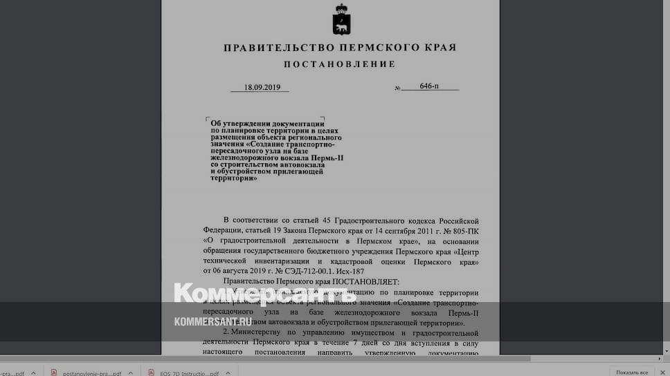 Краевое правительство утвердило документацию по планировке территории транспортно-пересадочного узла (ТПУ) в районе железнодорожного вокзала Пермь II.