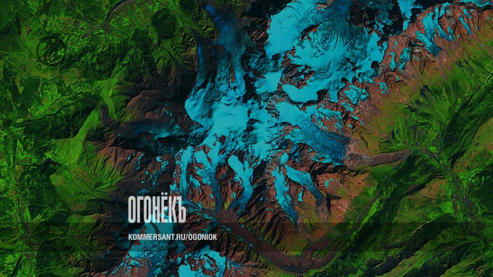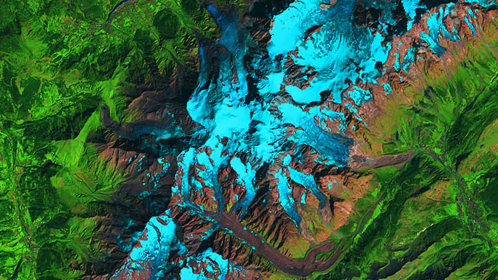 На этой спутниковой фотографии НАСА — часть массива Монблан. Сползающий на Италию ледник Планпансьё — вверху справа