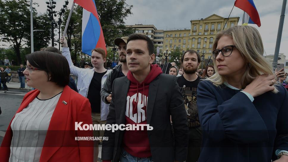 Слева направо: незарегистрированные кандидаты в Мосгордуму Юлия Галямина, Илья Яшин и Любовь Соболь
