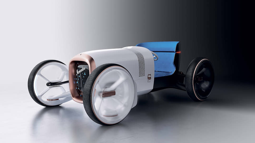 Проект Vision Mercedes Simplex напоминает о тех славных временах и заглядывает в будущее. Кузов представляет собой монокок «в окружении» четырех огромных колес. Решительное вертикальное разделение цветов на белую переднюю часть и черную заднюю – дань истории. То, что раньше называлось решеткой радиатора, превратилось в символ цифровой трансформации: теперь здесь черный дисплей с символами производителя. А доминирующая рамка из розового золота – настоящее свидетельство его устойчивого финансового положения.