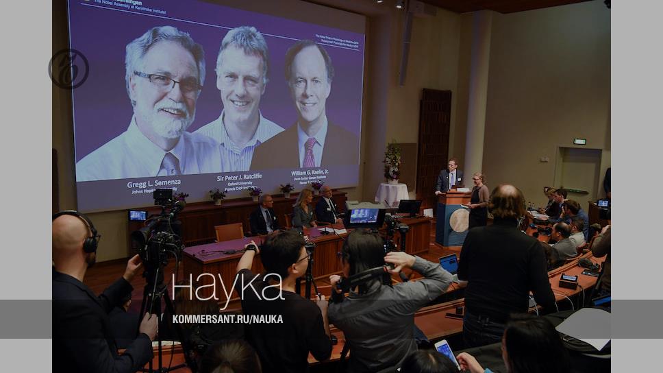 Доктор Уильям Келин (из Института рака имени Чарльза Даны и Сидни Фарбера, одного из учебных центров Гарвардской медицинской школы), сэр Питер Рэтклифф (Оксфордский университет и Институт имени Фрэнсиса Крика) и Грегг Л. Семенца (Университет Джонса Хопкинса) удостоены Нобелевской премии по физиологии и медицине за определение молекулярных механизмов, которые регулируют активность генов в ответ на изменение содержания кислорода — одного из наиболее важных для жизни клеток адаптивного процесса. Открытия лауреатов позволят лучше понять, как содержание кислорода влияет на деятельность клетки и в здоровом, и в больном, пораженном анемией или раком, организме, объявил Томас Перельман, секретарь Нобелевского комитета и профессор молекулярной биологии Королевского университета Стокгольма.