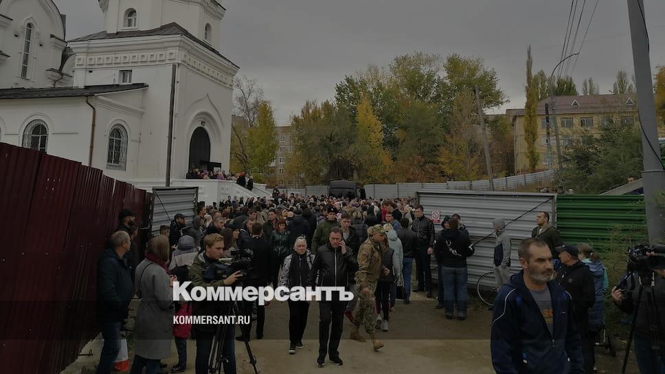 В Саратове в Петропавловском храме проходит отпевание девятилетней Елизаветы, убитой 9 октября. Как стало известно “Ъ”, церковь в отдалении от ее места проживания (Ленинский район города, Елизавета жила в Кировском) выбрана из соображений безопасности. На территории церкви и на прилегающей территории находятся около 1 тыс. человек, передает корреспондент “Ъ”.