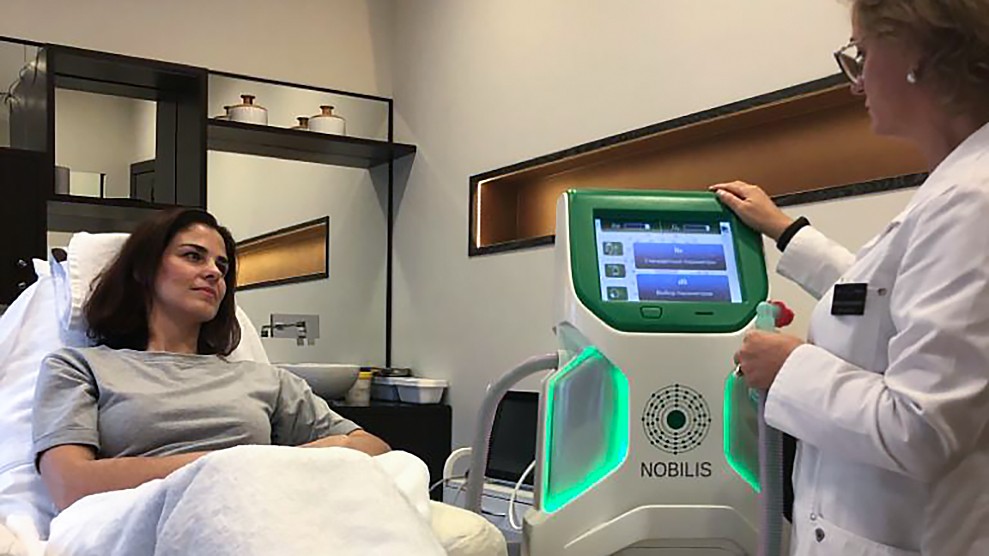 Тут работают на универсальном аппарате GeneO+, среди главных функций которого оксигенация, отшелушивание, лифтинг, вибрационный массаж, RF-прогрев кожи для улучшения плотности кожи и ультразвук для лучшего проникновения кремов и сывороток.