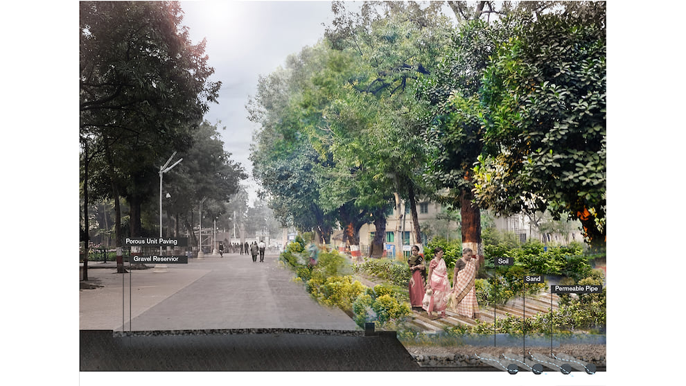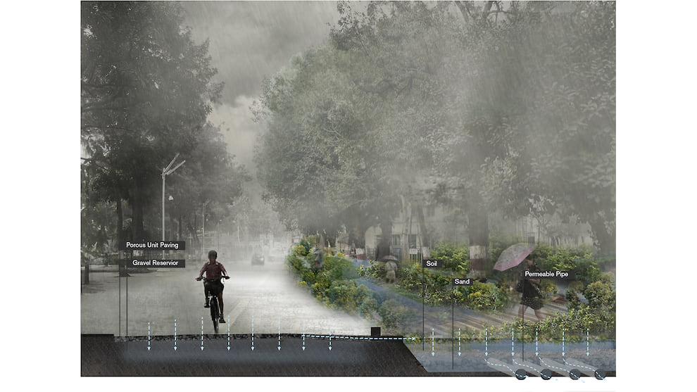 «Нужно обратить внимание на растения с большими корневыми системами. Скорее всего, это будут местные растения, которые впитывают много воды. Кустарники и деревья, например, подойдут, а газон не справится с большим количеством влаги из-за коротких корней. Мы можем создавать углубленные многоуровневые рельефы и наслаивать грунт и почву в зависимости от возвышения и посадки растений. Но это не значит, что если мы построим один парк в каком-то районе, то спасем весь город. Нужна система инфраструктуры — “зеленый пояс”, он же каркас, который будет очищать и фильтровать воду через себя и работать как сеть. Чтобы разработать такие системы, необходимы стратегии, которые затрагивают весь город и будут работать в тесном взаимодействии друг с другом».