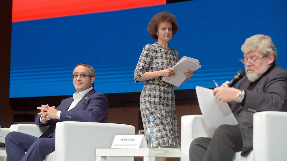 Председатель Мосгордумы Алексей Шапошников, руководитель департамента финансов Москвы Елена Зяббарова и председатель Общественной палаты Константин Ремчуков