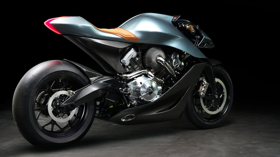 Новинка получила 180-сильный литровый V-образный 2-цилиндровый двигатель с турбонаддувом. Мотор сочетается с 6-ступенчатой коробкой передач с проскальзывающим сцеплением. Мотоцикл массой 180 кг сделан из титана, алюминия и углепластика, причем композитные обтекатели также включены в силовую структуру байка.