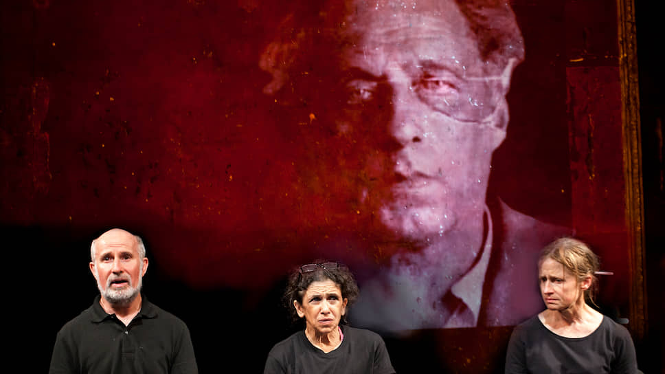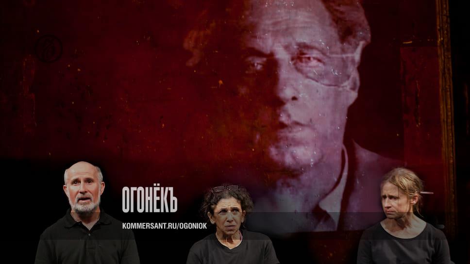 Актеры Марчелло Маньи, Кэтрин Хантер и Хейли Кармайкл размышляют о судьбе Всеволода Мейерхольда (сцена из спектакля «Why?»)