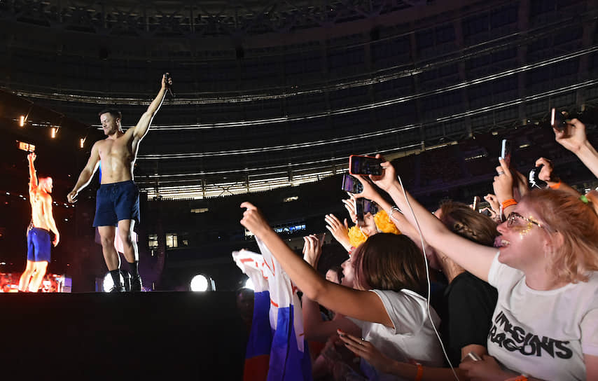 Актер спустился со сцены, забрал смартфон из рук зрителя и бросил под сиденье, как пишут очевидцы, «не выходя из роли» и продолжая петь.