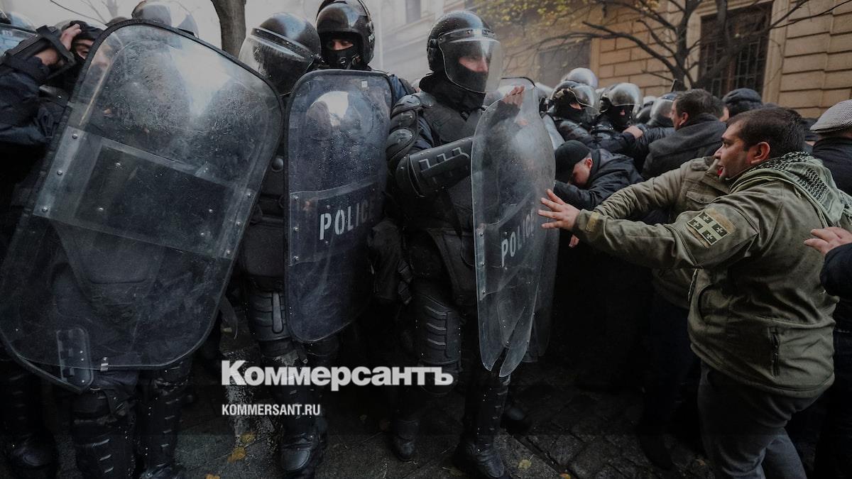 Корреспондент “Ъ” сообщил, что до этого представитель МВД подошел к митингующим и выдвинул 30-минутный ультиматум: он заявил, что через полчаса начнется применение силы. Сразу после истечения этого срока части спецназа МВД выдвинулись в сторону ворот парламента сразу с нескольких направлений. Спецназ спускался со стороны горы Мтацминда. За счет того, что улицы вокруг здания очень узкие, они могли двигаться, не размыкая строя, постепенно вытесняя протестующих в сторону центрального проспекта Руставели. Лидеры оппозиции находились в первых рядах протестующих: они пытались задержать колонны.