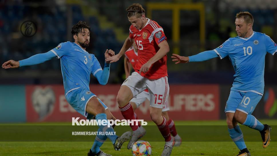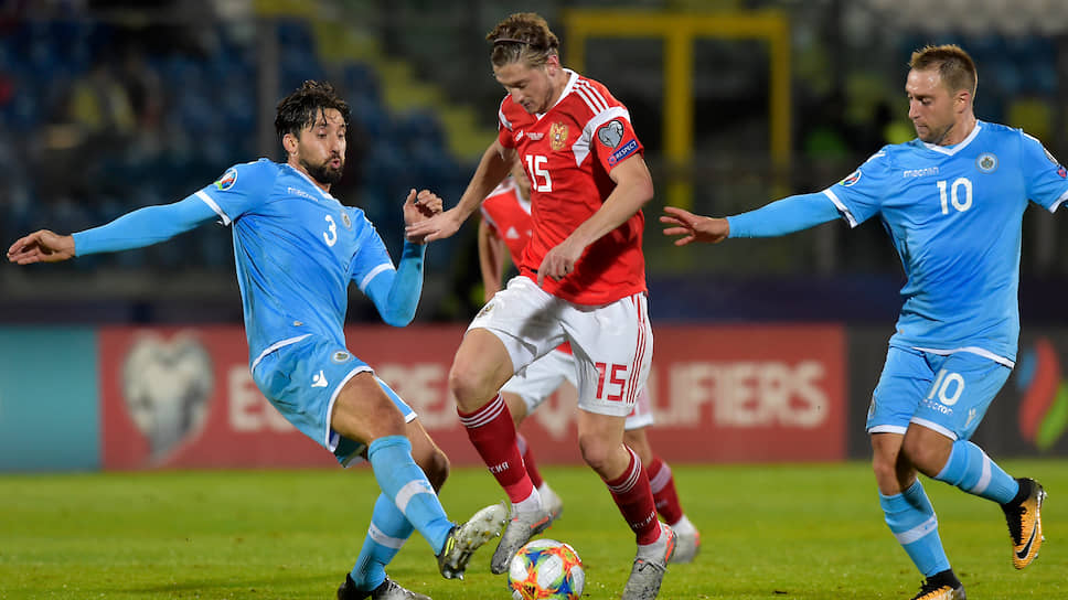 Сборной России (в красной форме — Антон Миранчук), разгромившей в заключительном матче отбора санмаринцев, на чемпионате Европы придется иметь дело