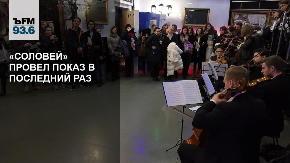 «Великий диктатор» опоздал на 40 минут. В девять вечера, наконец, заиграла заставка, которую услышали первые зрители киноцентра в 1989 году — этим фильмом он и открывался. Повторный выход «Великого диктатора» в прокат совпал с закрытием «Соловья», хотя зрители c трудом верили в совпадение. Надпись «политическая сатира» на билете защитники киноцентра особенно оценили. Актуально звучал и знаменитый монолог Чаплина о борьбе за мир и о надежде. А после «самый последний сеанс» с порядковым номером 325168 завершился. Это был конец фильма и, видимо, конец «Соловья», в чем многим хотелось сомневаться: а, может, не снесут? Но совершенно точно это был сеанс единения и благодарности.